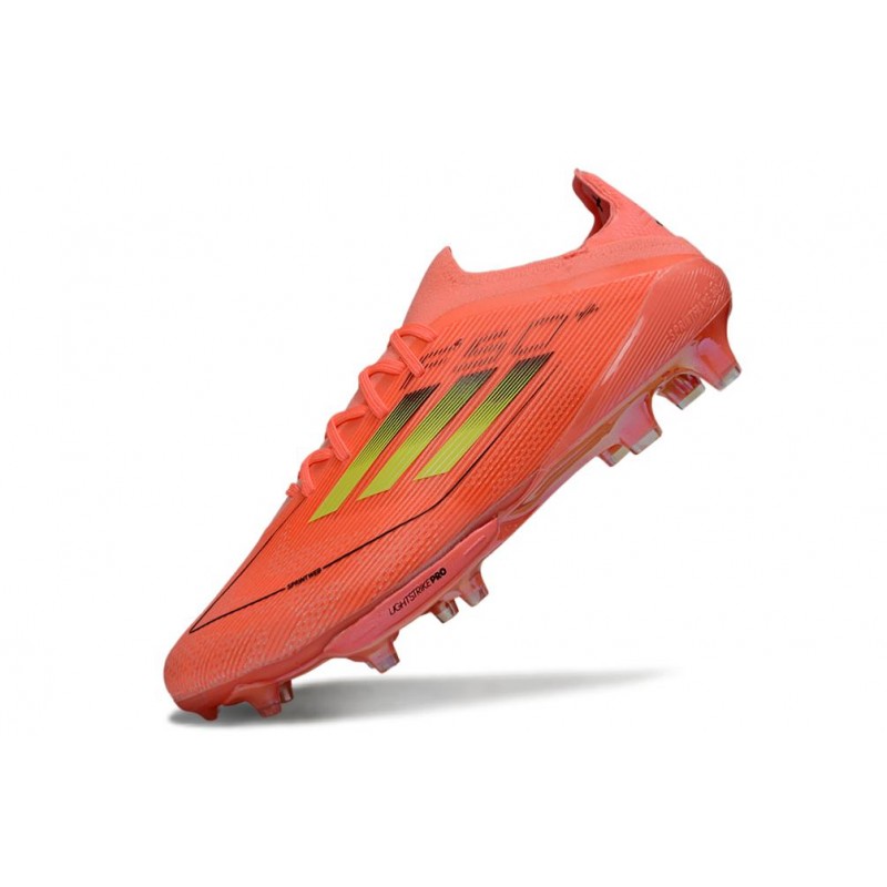 The adidas F50+ Fibertouch upper includes Compression Fit Tunnel Tongue for lockdown and Sprintweb 3D texturing for high-speed dribbling.
