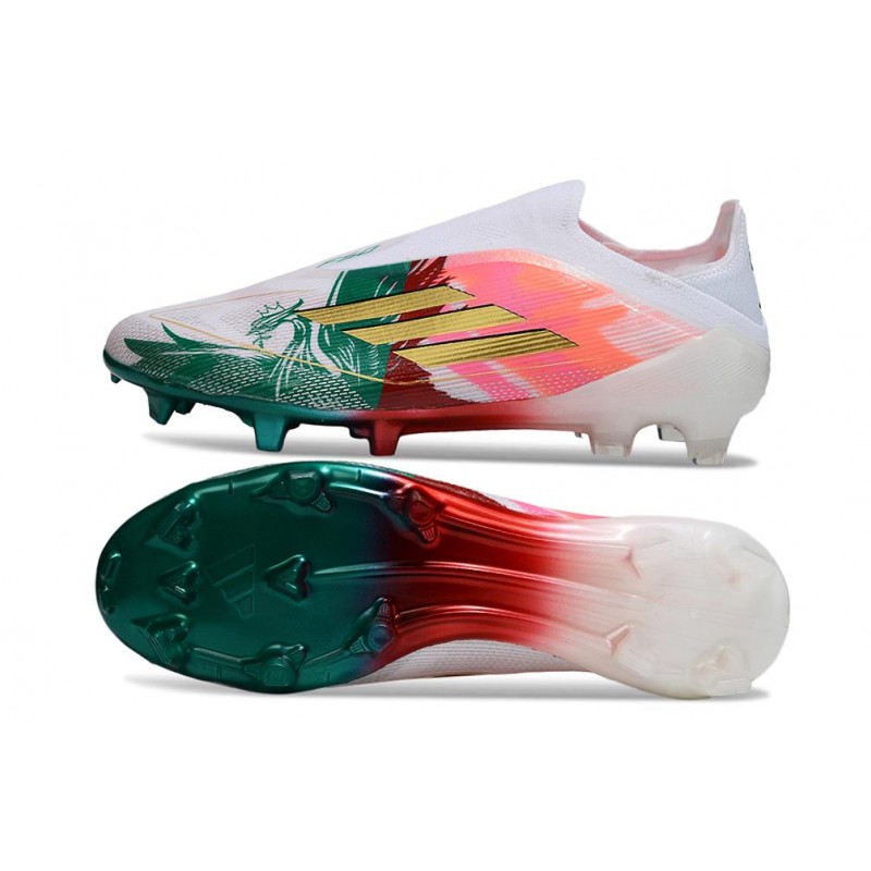 Adidas F50 Elite Laceless FG White Pink Green Gold